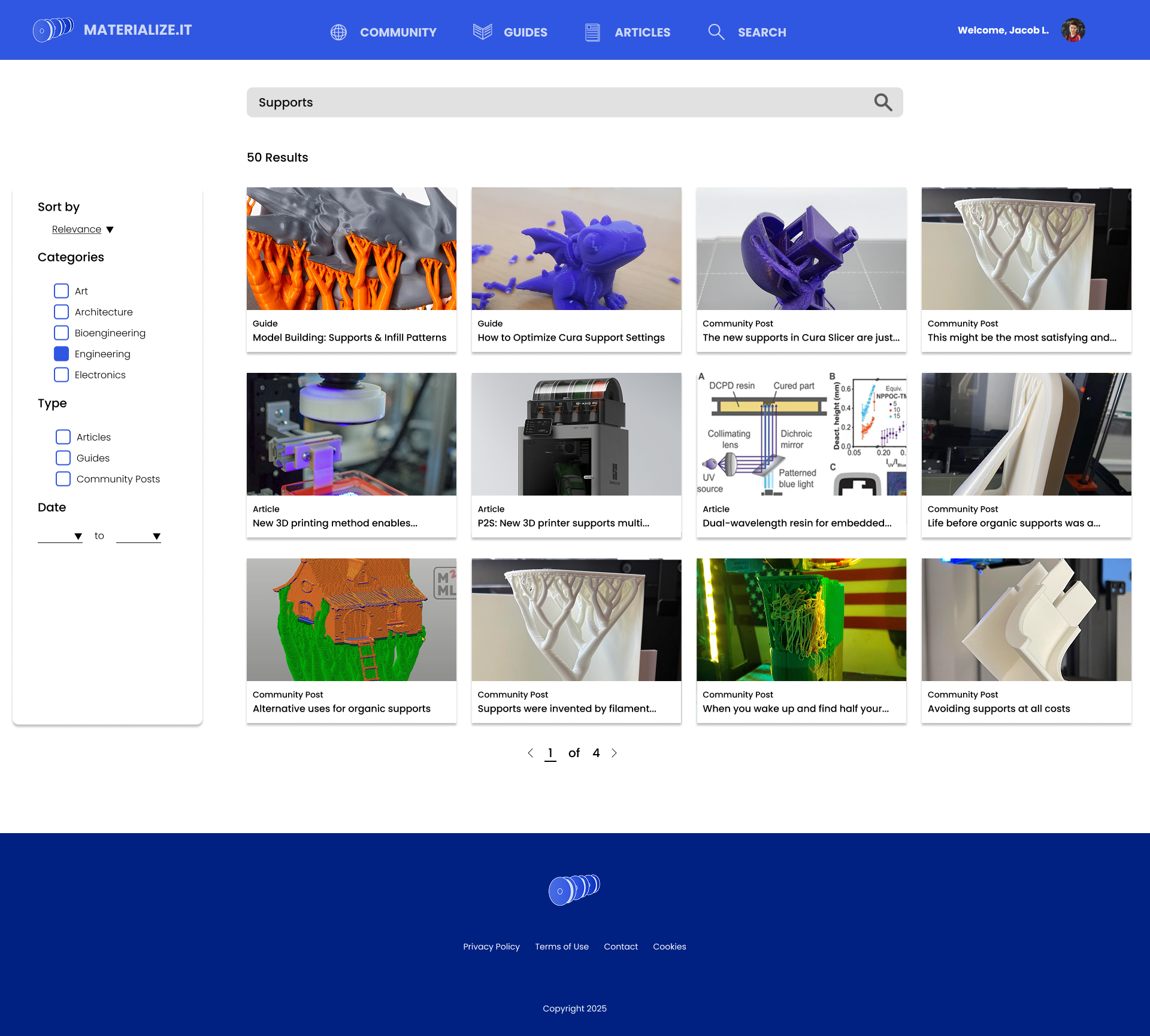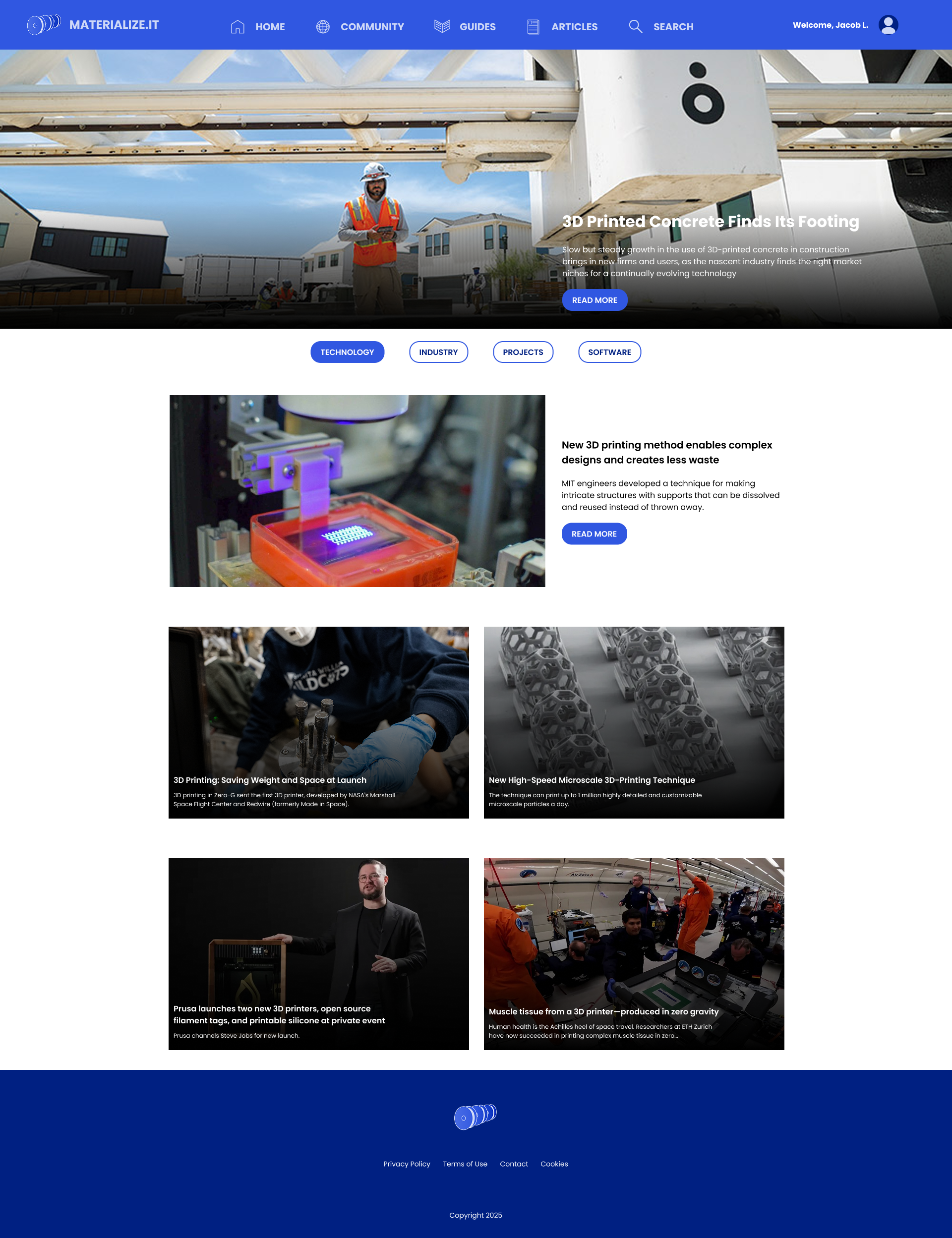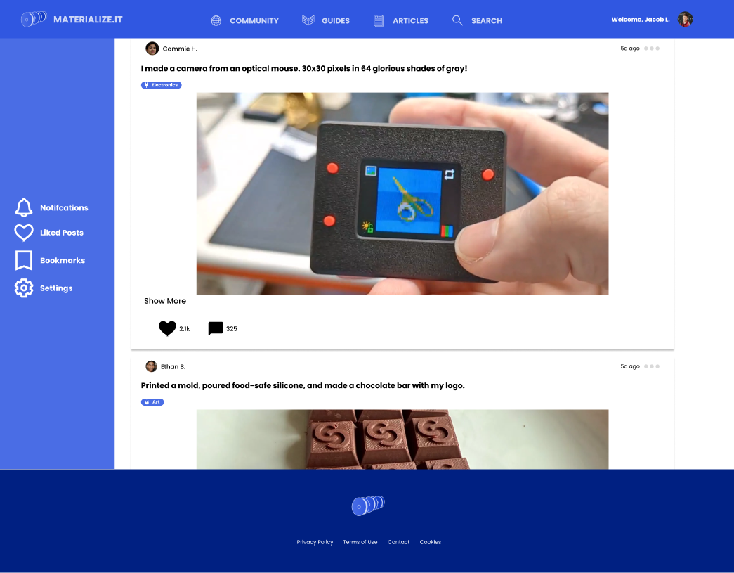 3D printing is a rising industry and desired skill in our world but is lacking in resources to educate new users. Many current users are self-taught with many of them not knowing the intricacies of creating 3D models for printing. Materialize.It Is a learning platform that will help guide users along the path of creation. Materialize.It is also a place to connect socially and collaborate on printing techniques and ideas.